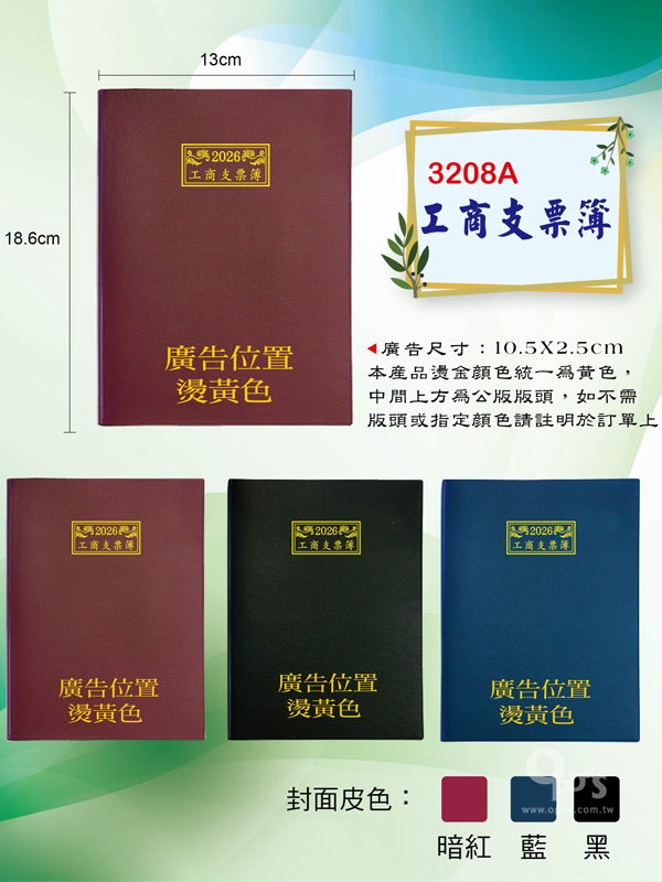 2026年32K工商支票簿(13*18.7CM)售價:52元