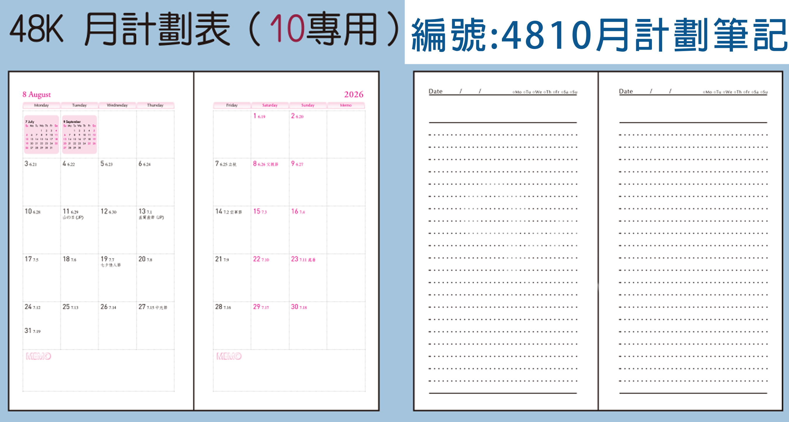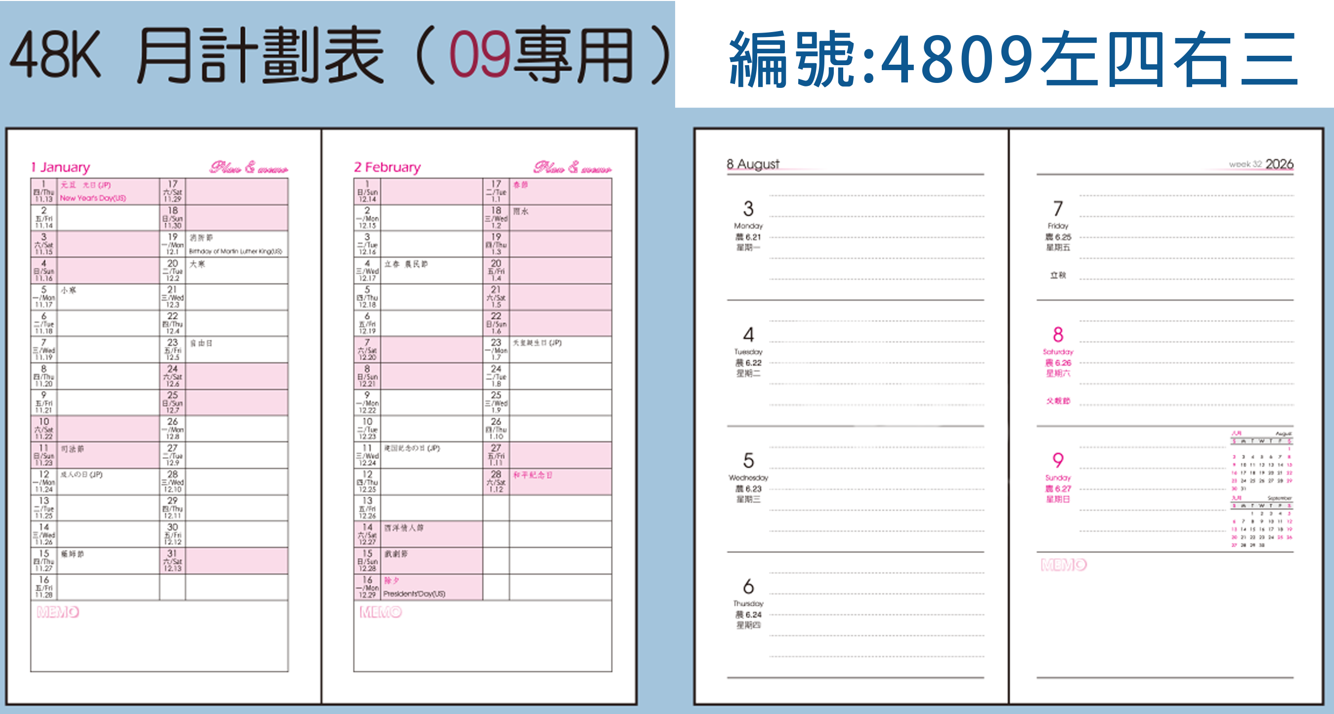 *48k09左四右三(附農民曆) /48k10月計劃筆記頁